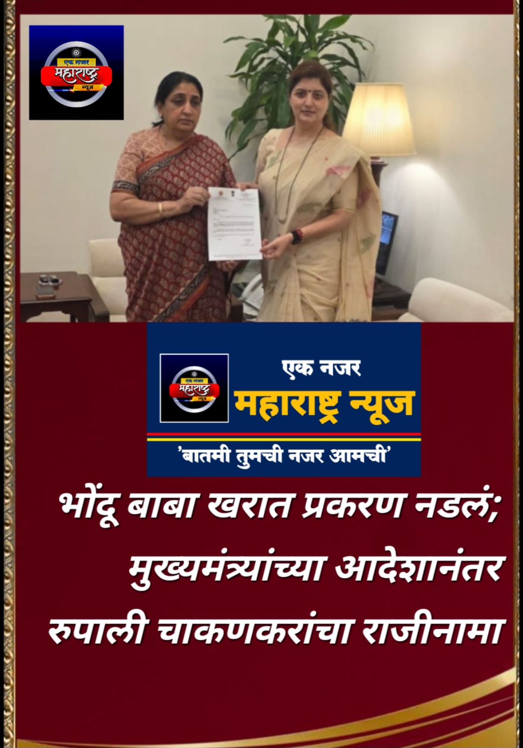 काही दिवसांपूर्वी भोंदूबाबा अशोक खरात याला अटक झाल्यानंतर त्याचे आणि रुपाली चाकणकर यांचे संबंध असल्याचे अनेक पुरावे समोर आले होते. सोशल मीडियावर दोघांचे फोटो आणि व्हिडिओ व्हायरल झाल्यामुळे चाकणकर मोठ्या अडचणीत सापडल्या होत्या. महिलांचे शोषण करणाऱ्या व्यक्तीसोबत महिला आयोगाच्या अध्यक्षांची जवळीक असणे, हे सरकारसाठी देखील डोकेदुखी ठरले होते. मुख्यमंत्री देवेंद्र फडणवीस यांनी या प्रकरणी अत्यंत कडक भूमिका घेत चाकणकर यांना पद सोडण्याचे स्पष्ट निर्देश दिले होते. पक्षांतर्गत नाराजी आणि सत्तेतील दबाव