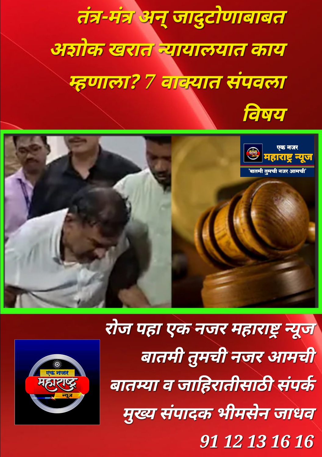 आजची बातमी नाशिक मधून नाशिक: महिलांवर लैंगिक अत्याचार आणि तंत्र-मंत्राचा वापर करीत अमानुष अत्याचार करणाऱ्या अशोक खरात याला न्यायालयाने 29 मार्चपर्यंत पोलीस कोठडी सुनावली आहे. कोठडी सुनावली आहे. 30 वर्षांच्या महिलेचे लैंगिक शोषण केल्याच्या आरोपावरून सुरू झालेला हा तपास आता थेट मानवी बळी आणि वन्यजीव शिकारीपर्यंत पोहोचल्याने संपूर्ण राज्य हादरले आहे. नाशिक न्यायालयात आज न्यायाधीशांनी अशोक खरात याला तुम्हाला काही बोलायचं आहे का? अशी विचारणा केली असता अशोक खरातने स्वतः बाजू मांडली.
