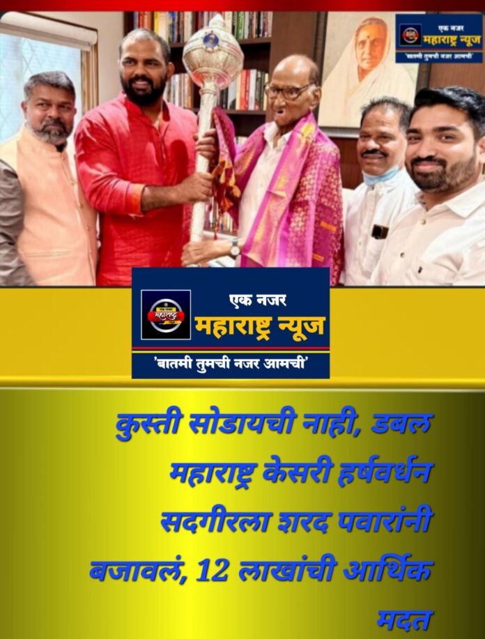कुस्ती खेळणार नाही, मला नोकरीचीही गरज नाही, अशी भावना उद्वेगातून व्यक्त केल्यानंतर सर्वच स्तरातून डबल महाराष्ट्र केसरी हर्षवर्धन सदगीरच्या पाठीवर धीराचा हात ठेवला जात आहे. मुंबई : डबल महाराष्ट्र केसरीचा बहुमान मिळविणारा पहिलवान हर्षवर्धन सदगीर याने नुकतीच ज्येष्ठ नेते शरद पवार यांची भेट घेतली. यावेळी ‘कुस्ती सोडायची नाही, गुरु काकासाहेब पवार यांच्या तालमीत जायचं, असा सल्ला पवारांनी हर्षवर्धनला दिला. यावर हर्षवर्धन सदगीर यानेही सकारात्मक प्रतिसाद दिला. कुस्ती खेळणार नाही, मला नोकरीचीही गरज नाही, अशी भावना उद्वेगातून व्यक्त केल्यानंतर सर्वच स्तरातून हर्षवर्धनच्या पाठीवर धीराचा हात ठेवला जात आहे. शरद पवारांकडून १२ लाखांची मदत