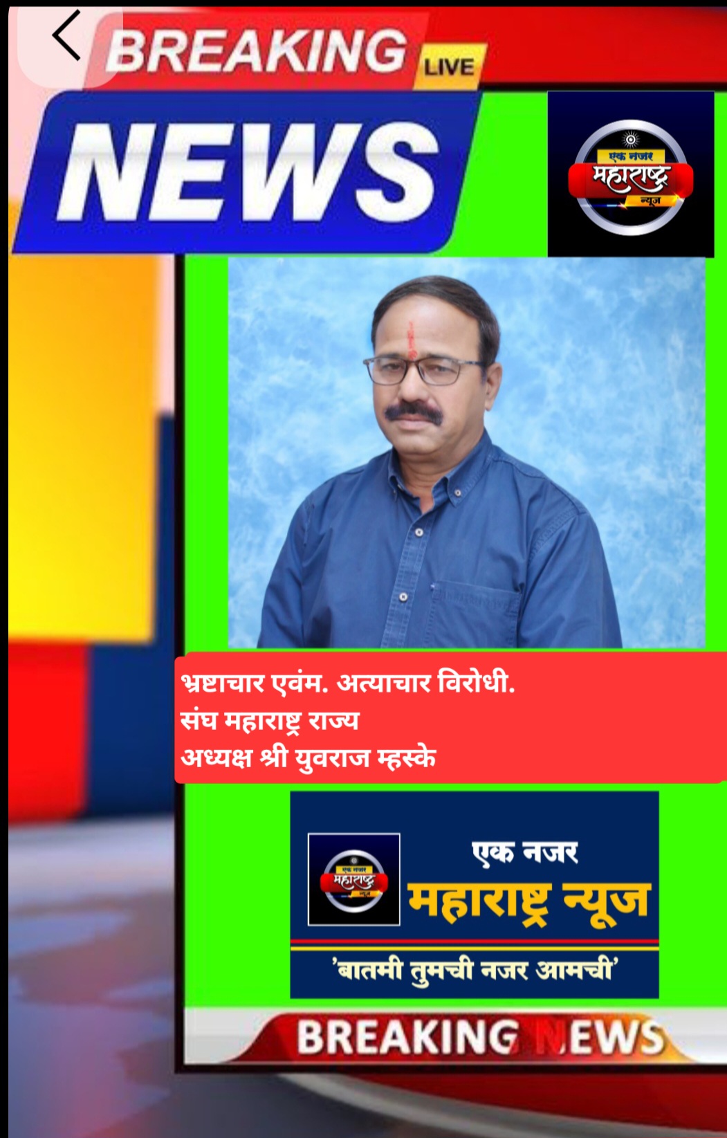 भ्रष्टाचार एवंम. अत्याचार विरोधी.संघ महाराष्ट्र राज्य अध्यक्ष श्री युवराज म्हस्के