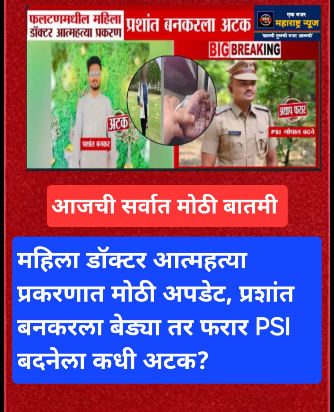 पोलिसांनी दिलेल्या माहितीनुसार, प्रशांत बनकरला फलटण येथील निंबोरे गावातून रात्री उशिरा ताब्यात घेण्यात आले. आत्महत्येच्या २४ तासांच्या आतच ही अटक करण्यात आली आहे. मात्र, या प्रकरणातील दुसरा आरोपी, पीएसआय गोपाल बदने, अजूनही फरार आहे. पोलीस पथके त्याचा कसून शोध घेत आहेत. फलटण शहर पोलीस ठाण्यातून मिळालेल्या माहितीनुसार, फरार आरोपी बदनेलाही लवकरच अटक केली जाईल अशी अपेक्षा आहे. या घटनेमुळे फलटण परिसरात खळबळ उडाली असून, पोलीस पुढील तपास करत आहेत.