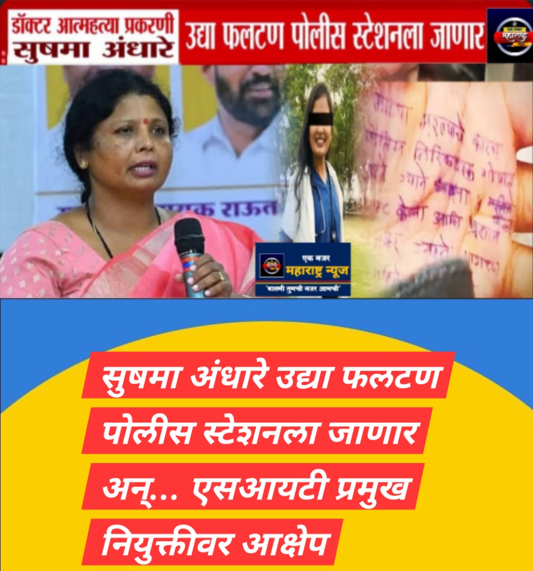 एक नजर महाराष्ट्र न्युज फलटण : ठाकरे गटाचे नेते सुषमा अंधारे उद्या सकाळी 10:30 वाजता फलटण पोलीस स्थानकाला भेट देणार आहेत. फलटण येथील महिला डॉक्टर संपदा मुंडे यांच्या आत्महत्या प्रकरणी त्या पोलिसांशी चर्चा करतील. या प्रकरणाच्या विशेष तपास पथकाच्या (एसआयटी) प्रमुखपदी पोलीस अधिकारी तेजस्वी सातपुते यांच्या नियुक्तीवर सुषमा अंधारे यांनी आक्मा अंधारे उद्या फलटण पोलीस स्टेशनला जाणार अन्… एसआयटी प्रमुख नियुक्तीवर अंधारे यांनी आक्षेप घेतला आहे.सुषमा अंधारे यांच्या म्हणण्यानुसार, त्या काही कायदेशीर मुद्द्यांवर प्रश्न विचारण्यासाठी आणि संपदा मुंडे यांना न्याय मिळावा यासाठी फलटणमध्ये जात आहेत. हा लढा कोणत्याही पक्षीय राजकारणाच्या पलीकडे जाऊन एका माणसासाठी दिलेला आहे. यागरिकांनी सहभागी व्हावे, अशी त्यांची अपेक्षा आहे. हा तपास निष्पक्षपणे व्हावा आणि पीडितेला न्याय मिळावा, अशी त्यांची मागणी आहे.