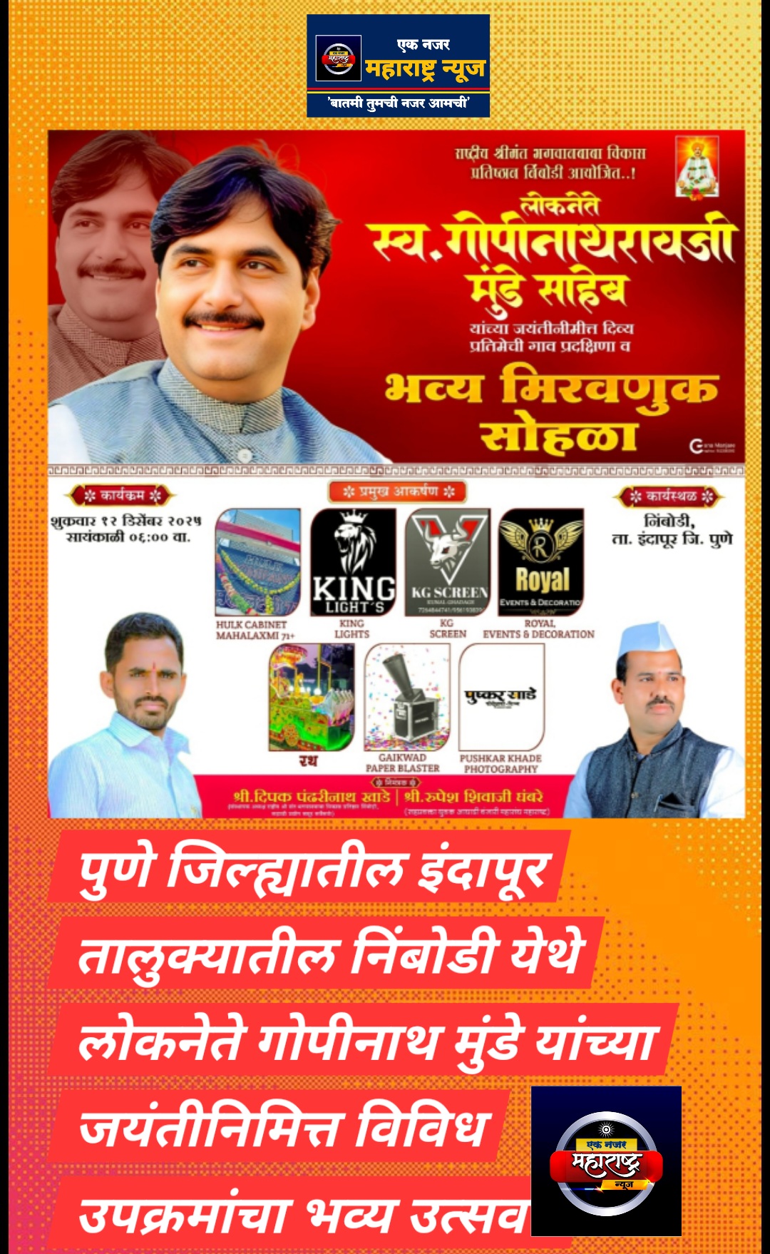 एक नजर महाराष्ट्र न्यूज इंदापूर (पुणे) अनिल खाडे