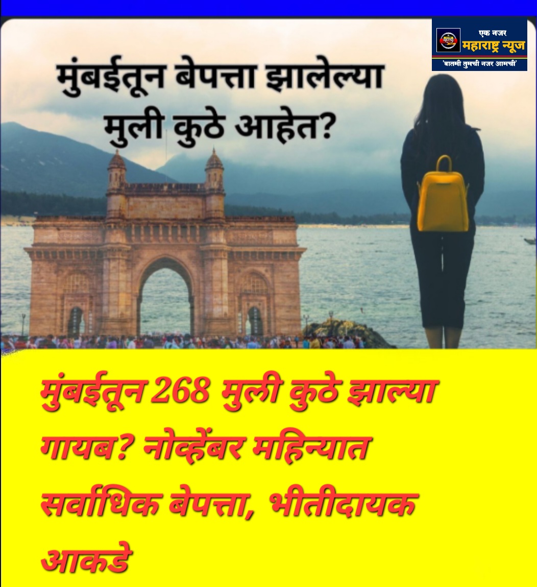 एक नजर ना महाराष्ट्र न्यूज मुंबई : देशाची आर्थिक राजधानी मुंबईमध्ये १८ वर्षांपर्यंत तरुण-तरुणी बेपत्ता होत असल्याच्या घटना सातत्याने वाढत आहेत. मुंबई पोलिसांकडून मिळालेल्या माहितीनुसार, जून ते डिसेंबरच्या पहिल्या आठवड्यापर्यंत मुंबईतून ३७० हून अधिक तरुण-तरुणी बेपत्ता झाल्या. यात २६८ मुली आहेत. हा आकडा एकूण घटनांच्या ७२ टक्के आहे. सर्वसाधारणपणे दर महिन्याला ६० मुलं बेपत्ता होतात. अल्पवयीन मुलं गायब होणं ही बाब त्याच्या सुरक्षेसाठी गंभीर चिंता निर्माण करणारी आहे.